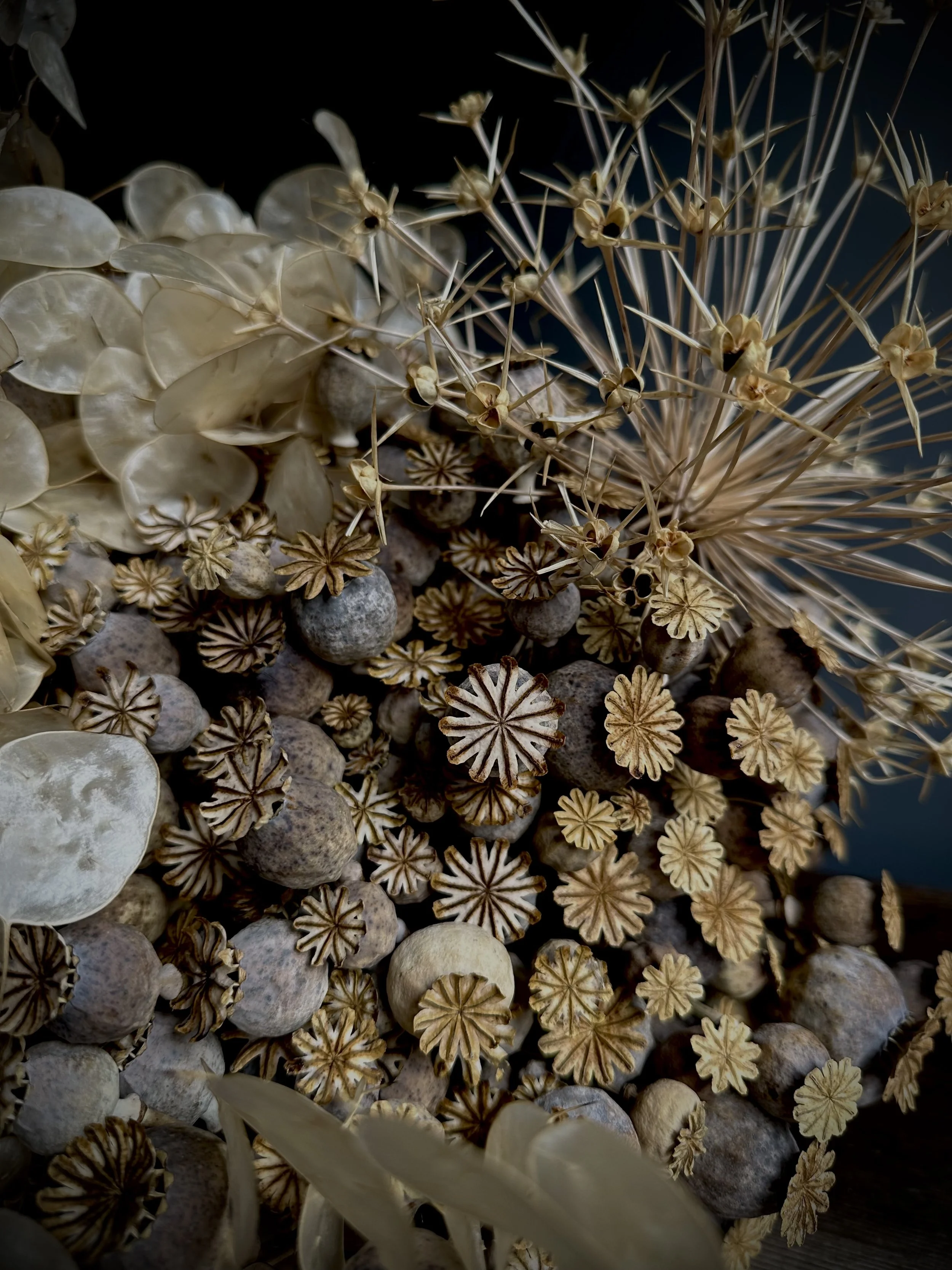 Dried forms, arranged in response to autumn’s textures.